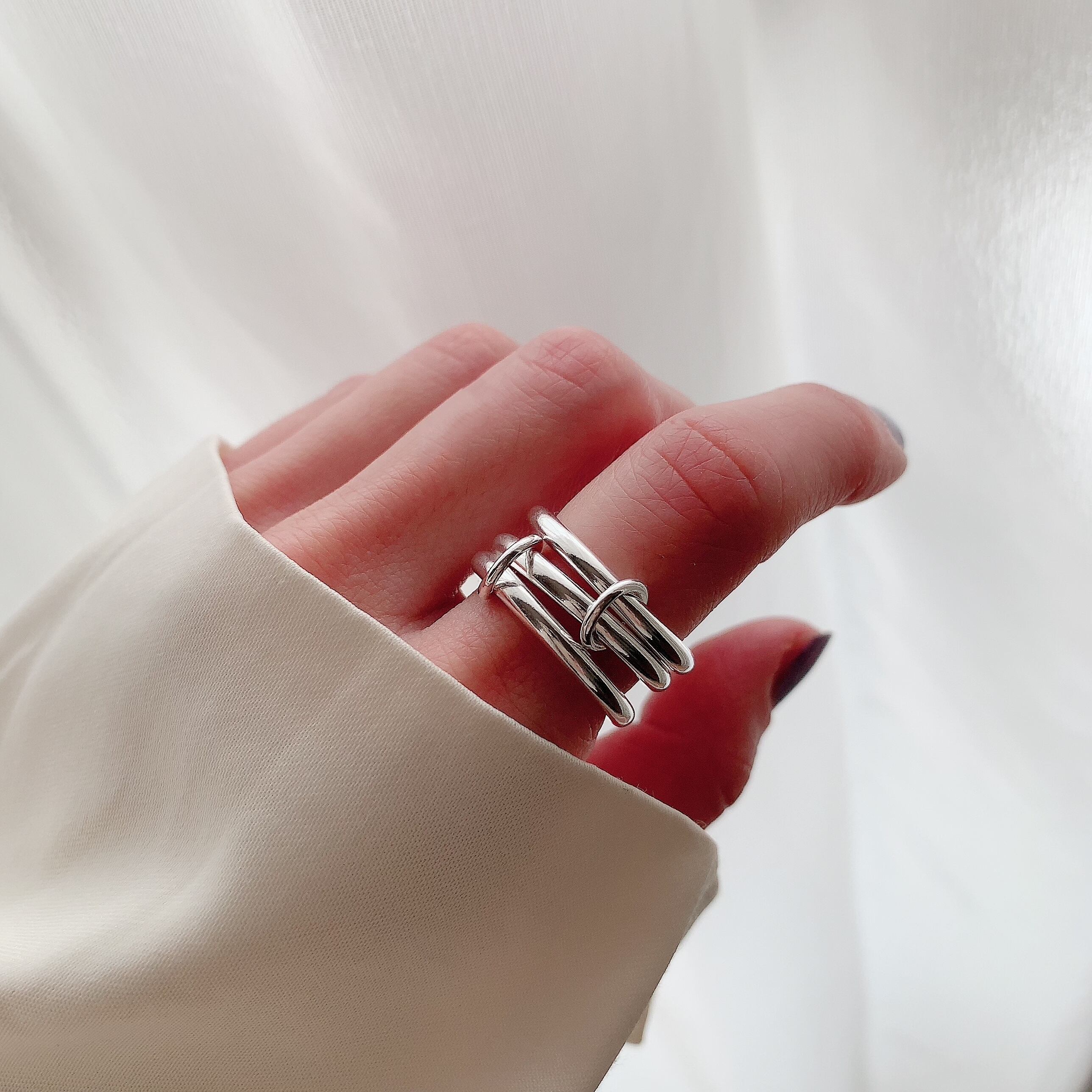 3連を1つの指に着けてもいいし、様々な指に1連ずつ連ねてもいいし、2連と1連で連ねてもgood。様々なバリエーションが楽しめるリングです。