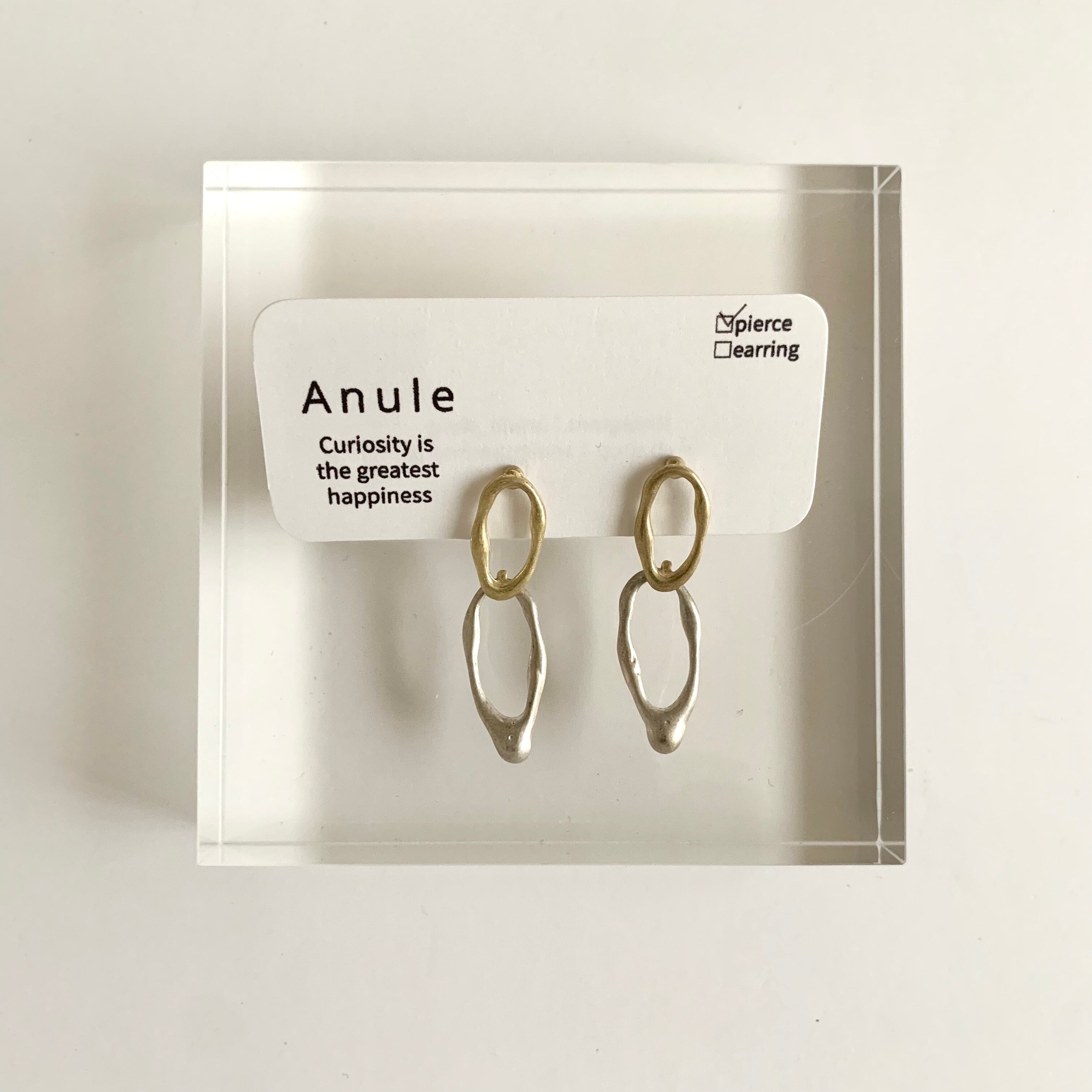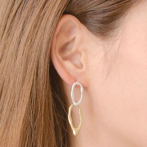 シンプルなオーバルフォルムに、シルバーとゴールドが連なったピアス。