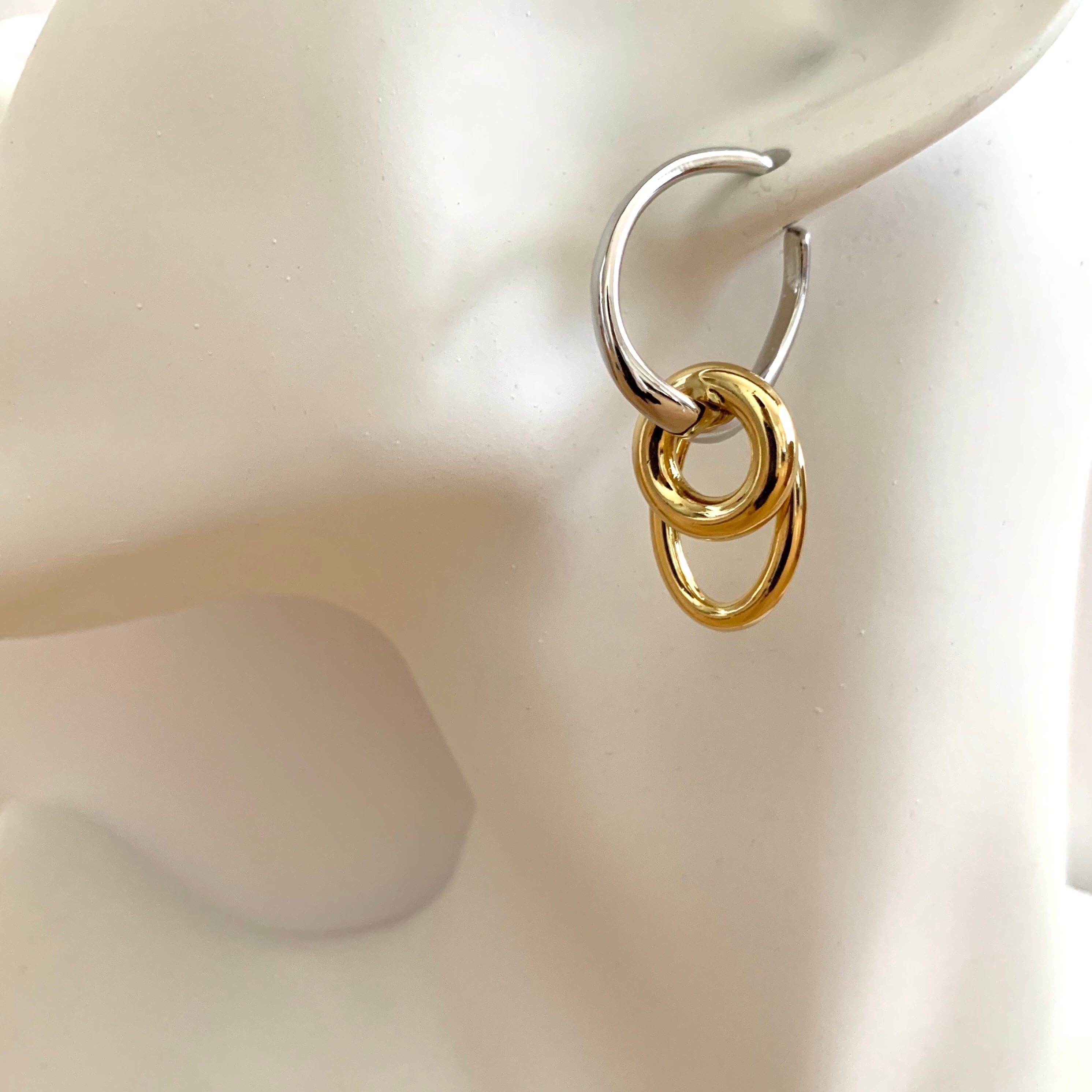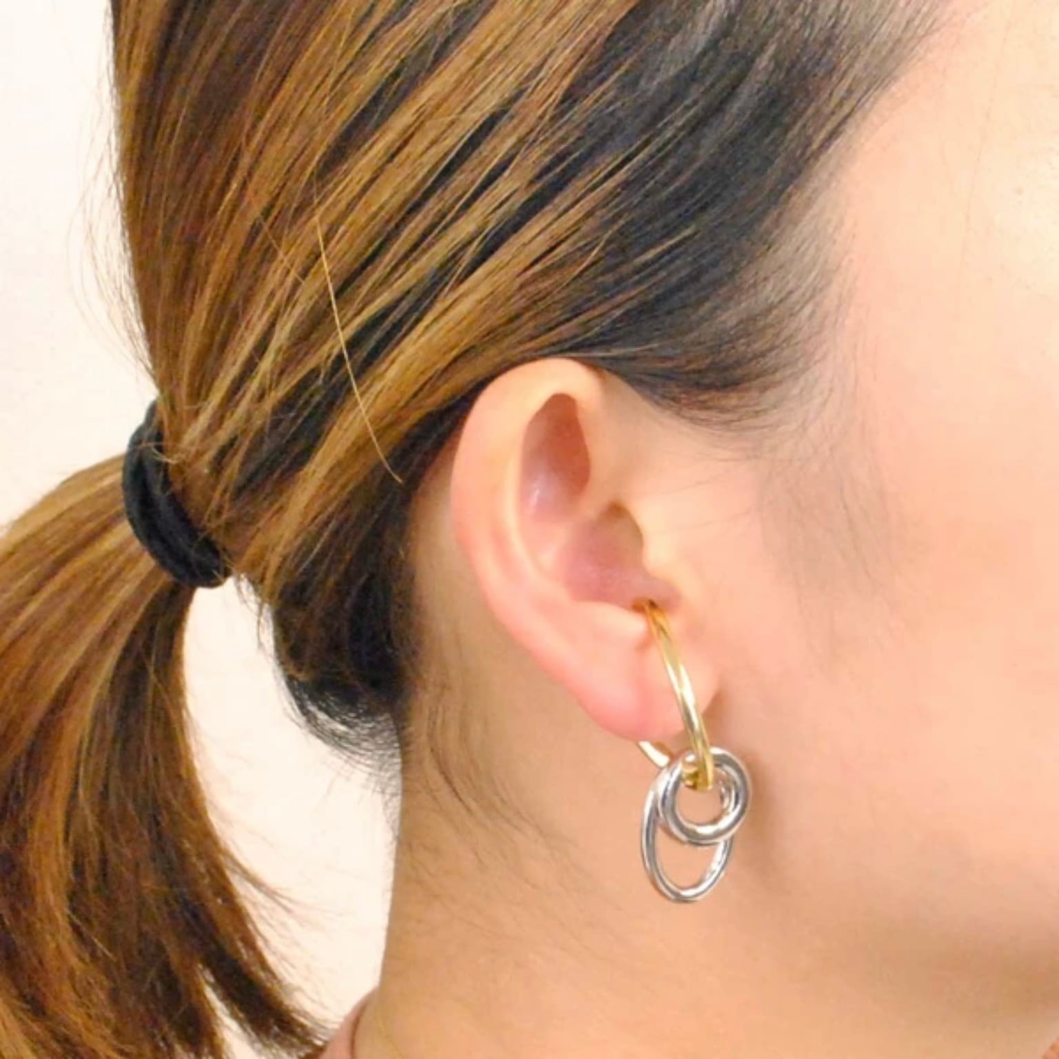 シルバー&ゴールドメタルの光沢が揺れるたびに耳元を華やかにし、様々なコーデのアクセントとして活躍してくれます☆