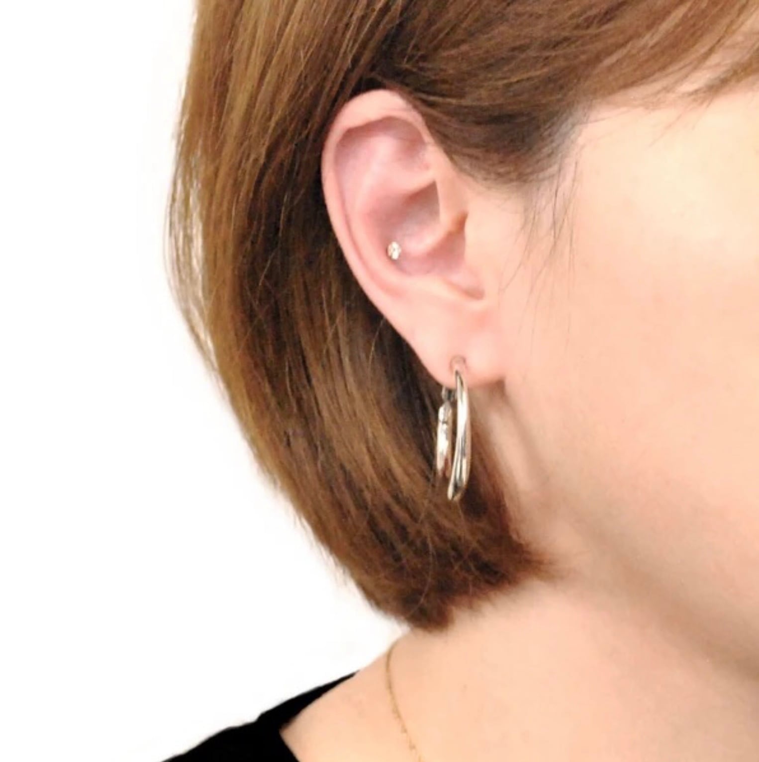 シンプルなのに洗練された存在感で、大人カジュアルに馴染むメタルフープイヤリング。